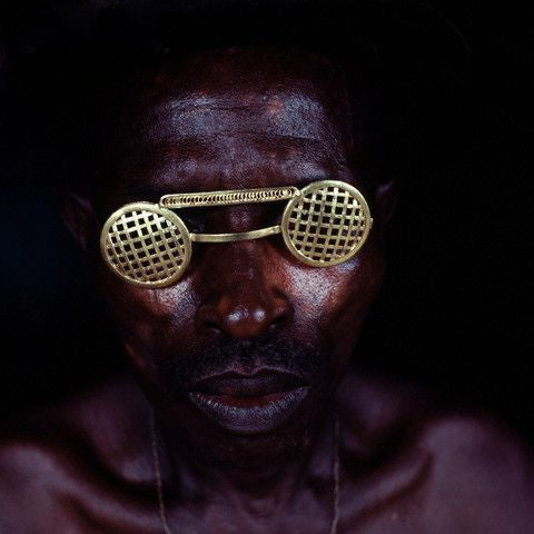 1- Man wearing solid gold ceremonial glasses during traditional ceremonies in Dabou, Côte d'Ivoire | King Baoulé by Daniel Lainé, 2008 / 2- Gold nugget, Ohiri do not own this picture, all copyrights and credit go to the respective owner
