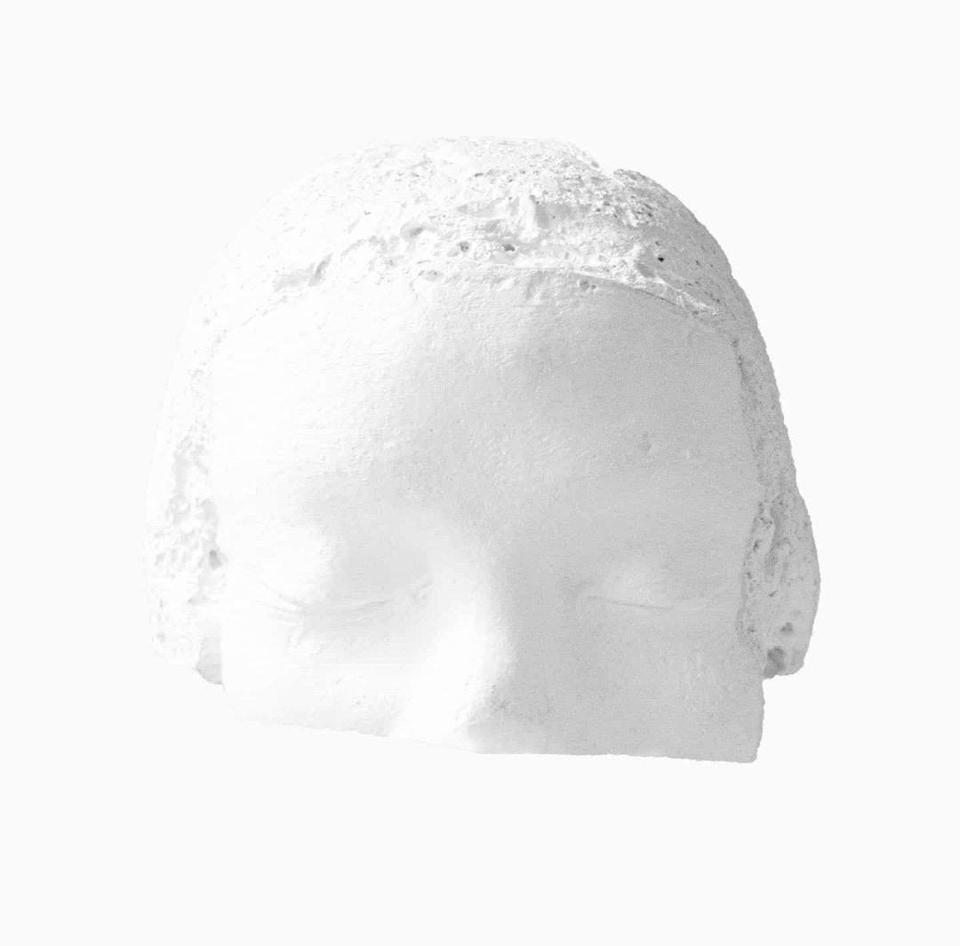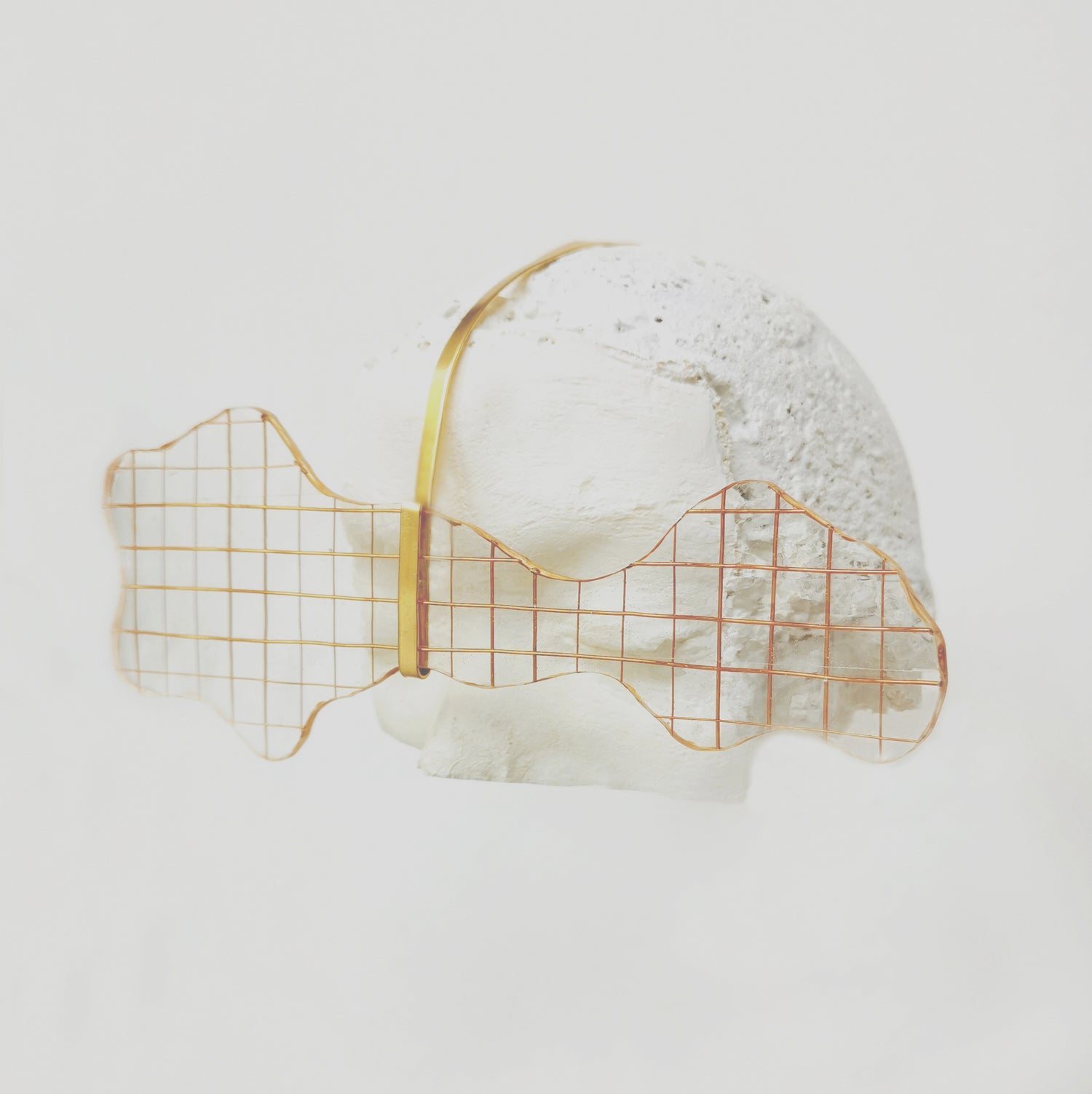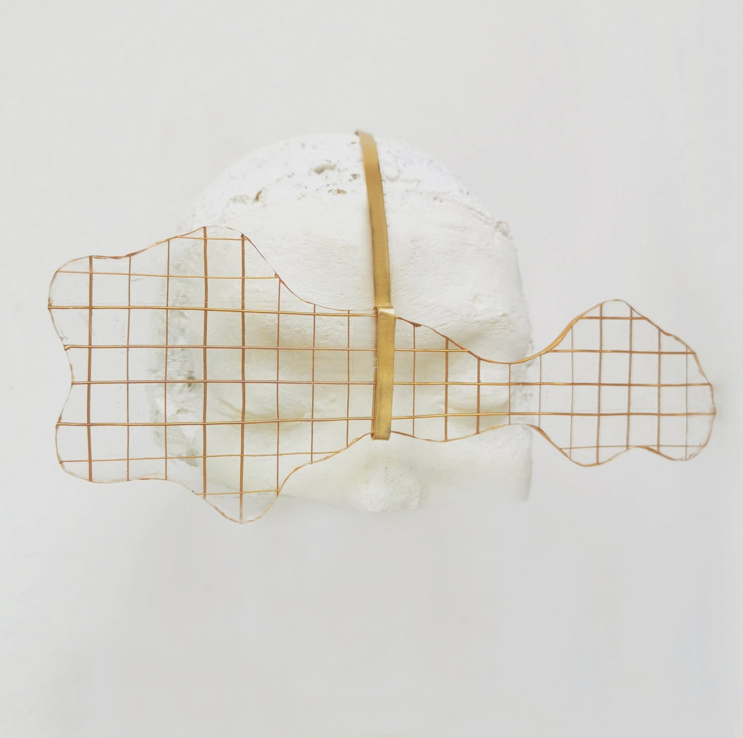 1+2- the eyewear, gold threads trapped in clear resin / 3- Face sculpture made by Akebehi Kpolo for Ohiri Studio, plaster and resin