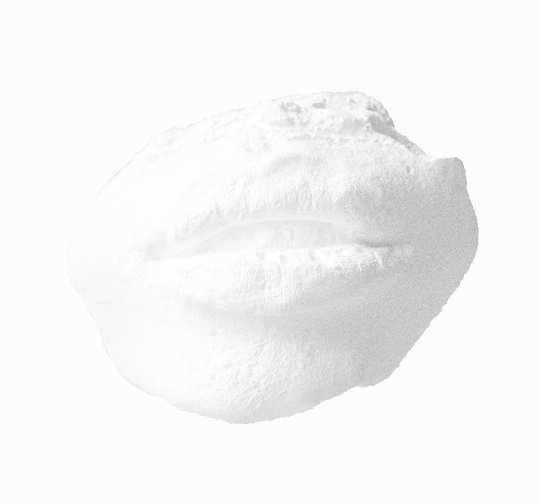 1- Mouth sculpture made by Akebehi Kpolo for Ohiri Studio, plaster and resin / 2+3- the mouthpiece, gold threads trapped in clear resin