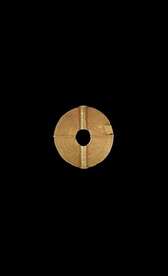 "The Akan have used the lost-wax, or “cire-perdue”, casting method for centuries. Today’s beads and ornaments are still made by this ancient method in Ghana and Côte d’Ivoire. To make a bead or a pendant, the craftsman first makes a model from beeswax, usually forming it from thin wax threads. In the south east of Côte d’Ivoire, Akan craftsmen only use wax threads to make ornaments. The arrangement of these wax threads on beeswax models is what we call “Akan stripes.”